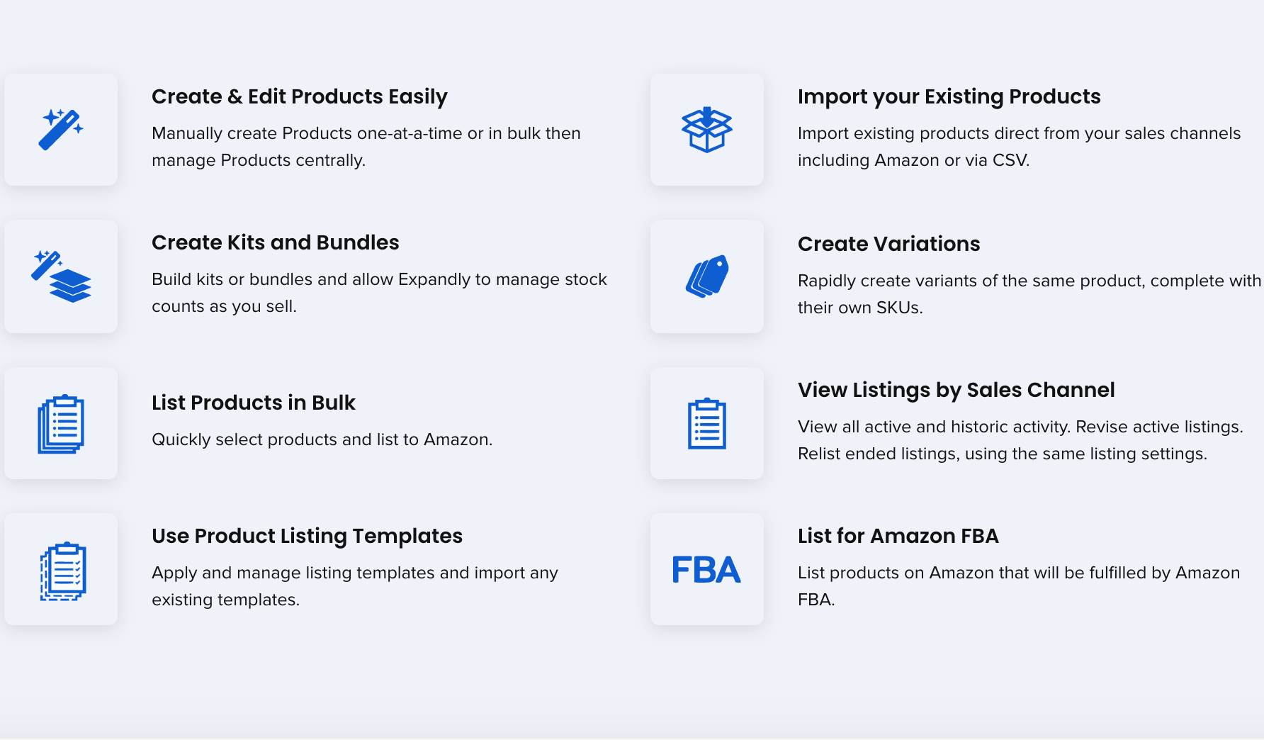 Grow your sales beyond Amazon or BigCommerce. Keep your inventory & orders in sync with ease. Create new ASINs on Amazon and keep your eBay listings in sync with your online store.